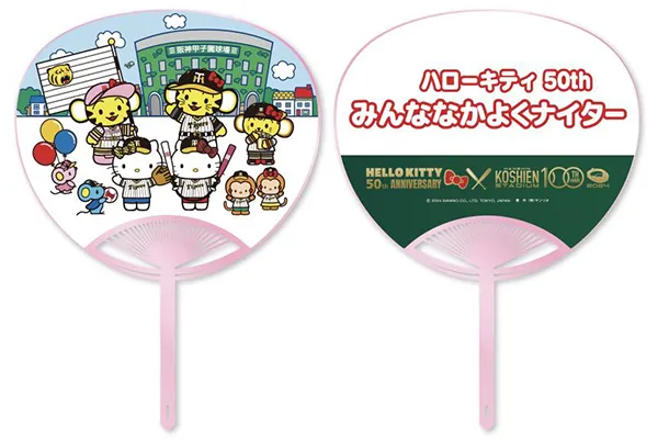 当日は、ハローキティが阪神甲子園球場に来場し、ファーストピッチセレモニーやイニング間イベントに登場し、当日の試合を盛り上げるほか、来場者には、ハローキティ50周年×阪神甲子園球場100周年オリジナルうちわを配布します。