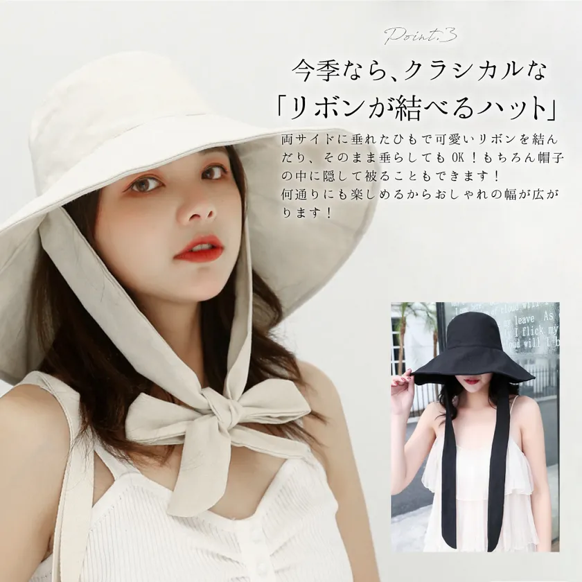 UVカット率99% 顔から首までしっかり守り 小顔見えする「つば広帽子」5/30新発売! 首の下でリボンが結べるクラシカルなデザイン
