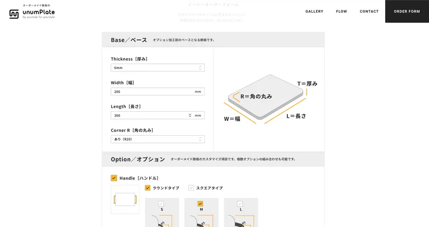 3ステップで注文可能なイージーオーダー鉄板