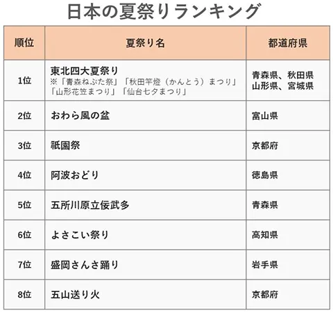 日本の夏祭りランキング! 東北四大夏祭りが1位で、2位はどこ? ~阪急交通社の2023年のツアー申込者数を集計~