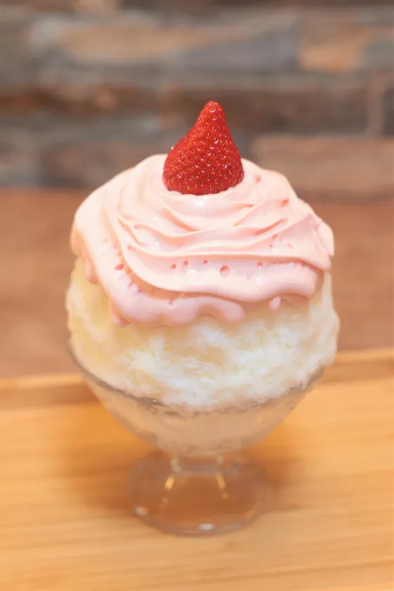 ヨーグルトベースに、柑橘ソースをたっぷりとかけ、デコポンをトッピングした爽やかなかき氷。