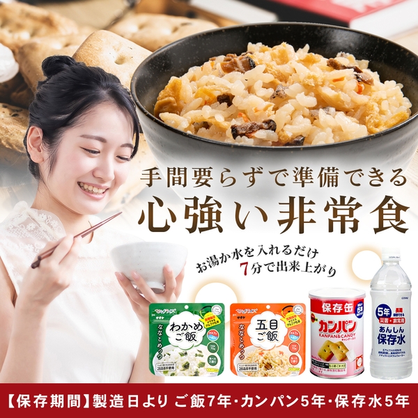 非常食に関しては「ご飯2種」「カンパン」「保存水」をご用意!