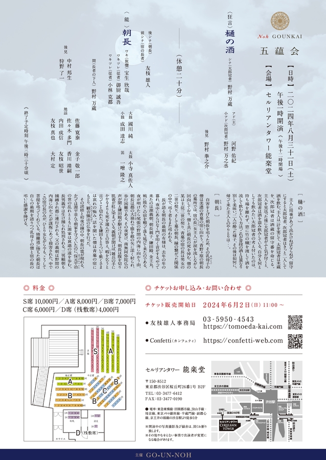 合同会社GO-UN-NOH主催、五蘊会『朝長』が2024年8月31日 (土)にセルリアンタワー能楽堂(東京都 渋谷区 桜丘町 26-1)にて上演されます。