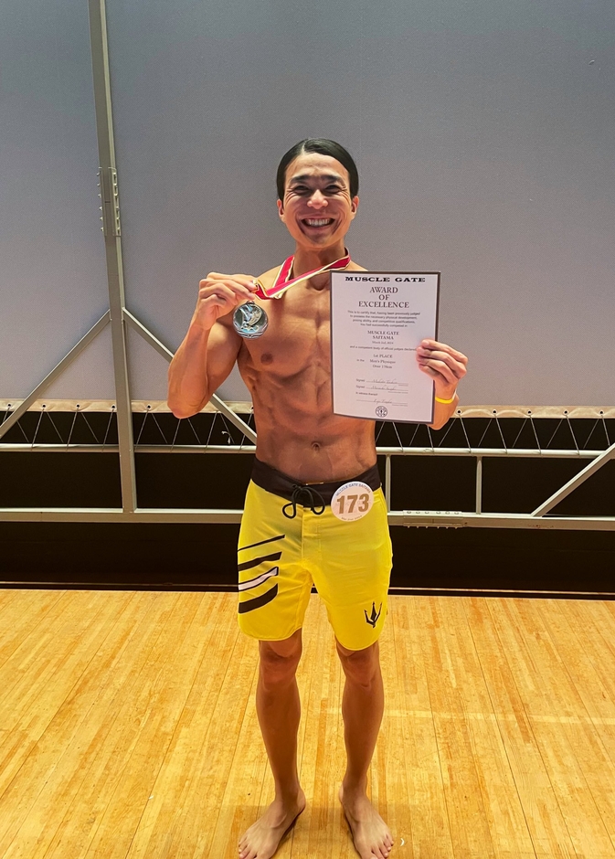 フィジーカーとしても活躍される中野さんがフィットネスを始めたのは、ジムでアルバイトを始めたのがきっかけで、約8年から9年ぐらい前からトレーニングをされています。競技として大会に出始めたのは一昨年からで、去年の3月にはマッスルゲート埼玉大会の一般の部で優勝もしています。フィットネスは趣味で始められましたが、実況の仕事をする際に、選手の筋肉についての話を解説の方とできたり、仕事に繋がってるそうです。