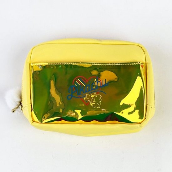 キラキラ感が目をひく、ピカチュウのポーチもご紹介♪外側のポケット部分がキラキラ素材。ファーのチャーム付きファスナーが、アクセントになっています。