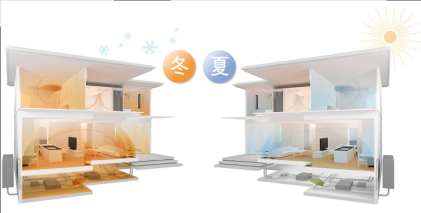 ●「あったかハイム」として人気のヒートポンプ方式の第一種換気・全室空調システム「快適エアリー」を標準搭載。住まいの課題になりがちな居室空間と水回り空間の寒暖差を軽減し、一年を通じて快適に過ごすことができます。また、窓を開けない換気と粉塵浄化機能で、毎日清浄された空気環境※9で暮らすことができます。