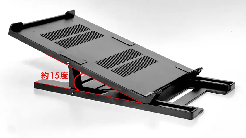 *まるで膝上のデスク。かばんの上のPC作業は不安定でタイピングも窮屈になりがち。Hackは国内特許取得済み(国際特許出願中)のスライド式PCスタンドを内蔵し、安定したPCタイピングを支援します。