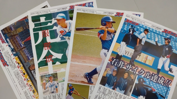 新たにスポニチ主催「高円宮賜杯第42回全日本学童軟式野球大会マクドナルド・トーナメント」(8月8日から14日まで開催)特別号外も仲間入り。チームごとに入場行進やプレー写真を号外化。最寄りのコンビニのマルチコピー機からA3またはA4サイズでプリントできます。この機会に、お気に入りの1枚を選んでご購入ください。