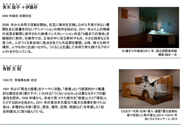 青木陵子+伊藤存、青野文昭、Artist in Residence KOBE (AiRK)、雨宮庸介、アルネ・ヘンドリックス、nl/rokko project、大野智史、小出ナオキ、田岡和也×Omult.Venzer、竹中美幸、楢木野淑子、西田秀己、野村由香、堀田ゆうか、マキコムズ、三原聡一郎、ロプ・ファン・ミエルロ、渡辺篤(アイムヒア プロジェクト)