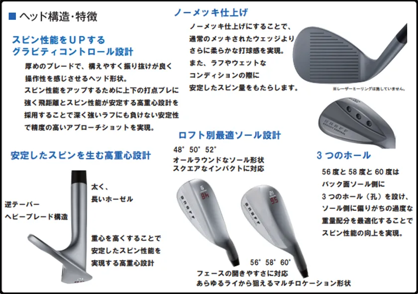 安定したスピン量で精度の高いアプローチショットを実現した、 本格軟鉄鍛造ノーメッキウェッジ