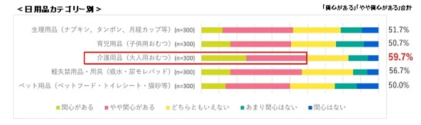 ・なかでも、「介護用品」を購入する方の約6割が、「サステナブルな生活」に関心をもっている。