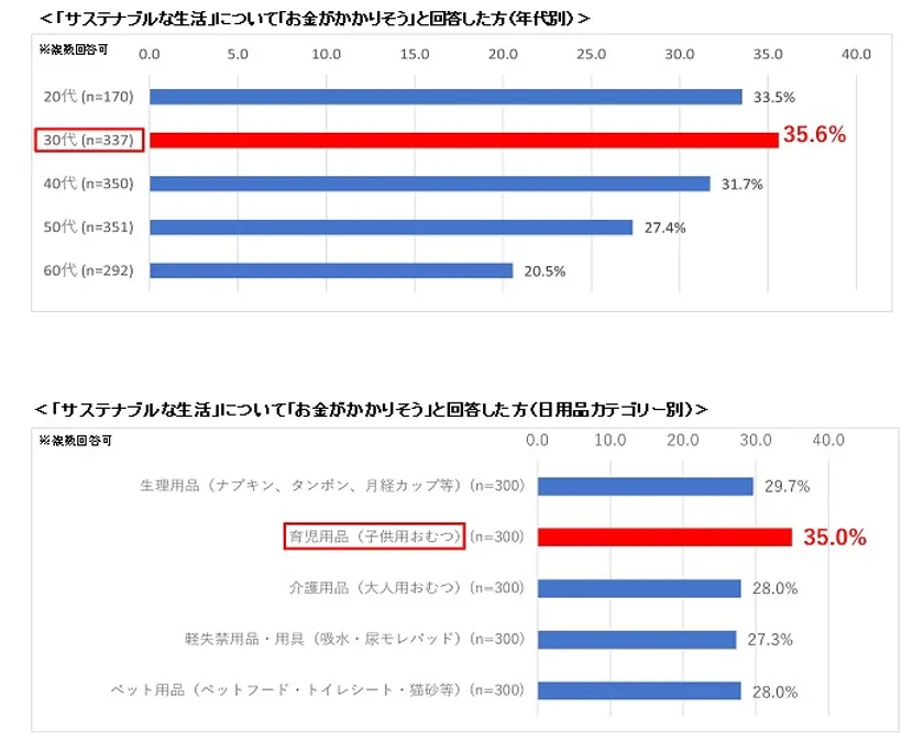 ・「30代」及び「育児に関わる方」は「サステナブルな生活」について、価格を重視すると推測する。