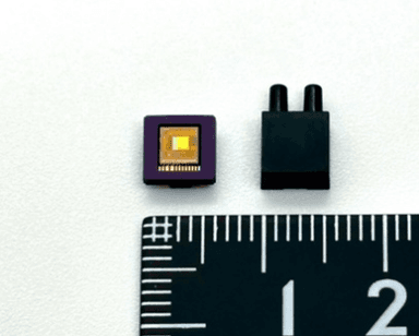 この小型化では、センサーチップ単体におけるセンサーエリア1.2ミリ×1.2ミリの世界最小サイズ※1となる小型チップの開発※3に加え、京セラの超小型セラミックパッケージ技術によるチップのシングルパッケージ化を採用したことで実現しました。