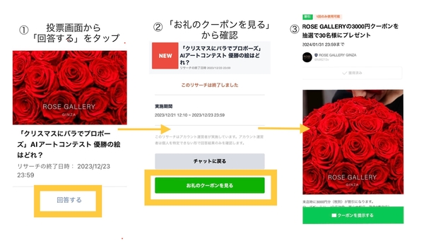 一般投票賞としてLINE投票にご参加いただきました方抽選で30名様に、ROSE GALLERYの店頭にて使える『3000円クーポン』をプレゼント致します。