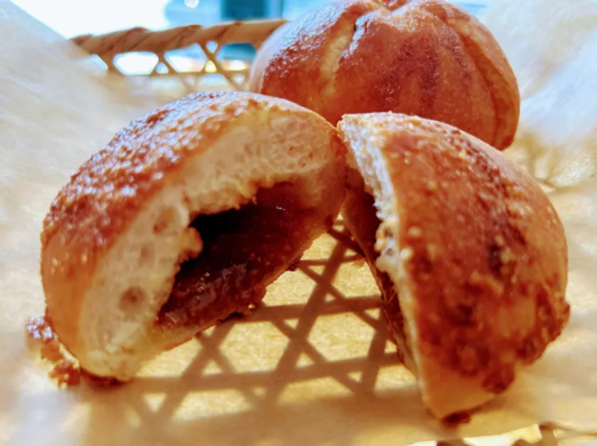 有機栽培大豆きな粉と、北海道生乳バターで作ったきなこバターに、すりごまをたっぷり加え、米粉入りのもちっと淡麗な味わいのパン生地で包んだ逸品。