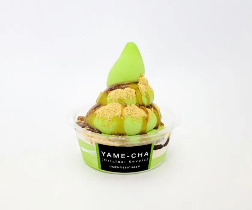 香り豊かな八女抹茶をたっぷり練り込んだ濃厚なソフトクリームに、黒蜜ときな粉を合わせた逸品。