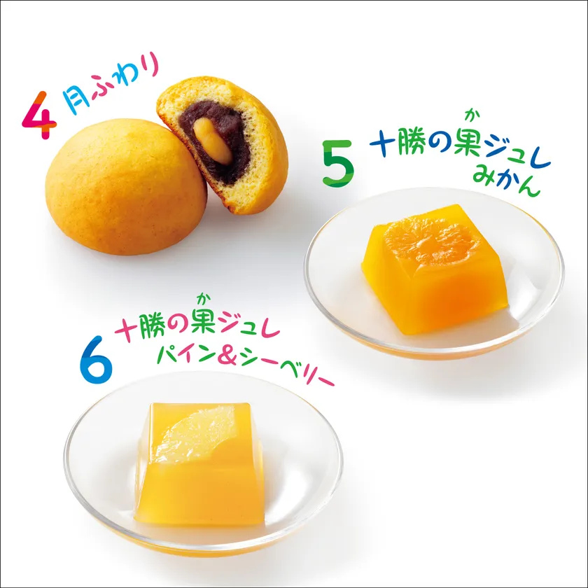 月ふわり×3個、十勝の果ジュレ(みかん×1個 パイン&シーベリー×1個)