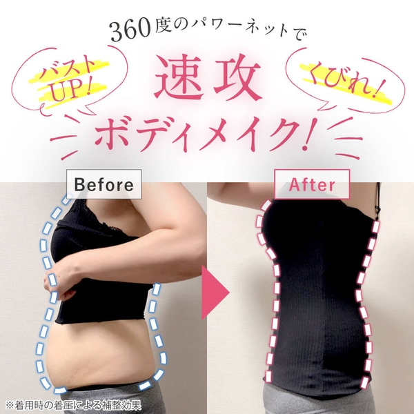 キャミソールの内側に360度のパワーネットを内蔵しているため、見た目は可愛いけどしっかり補整してくれます。またバストのすべり止め生地とアジャスターが付いていることにより一日中上向きのバストをキープしてくれます。おしゃれを楽しみながら愛されるメリハリボディをゲットできます。