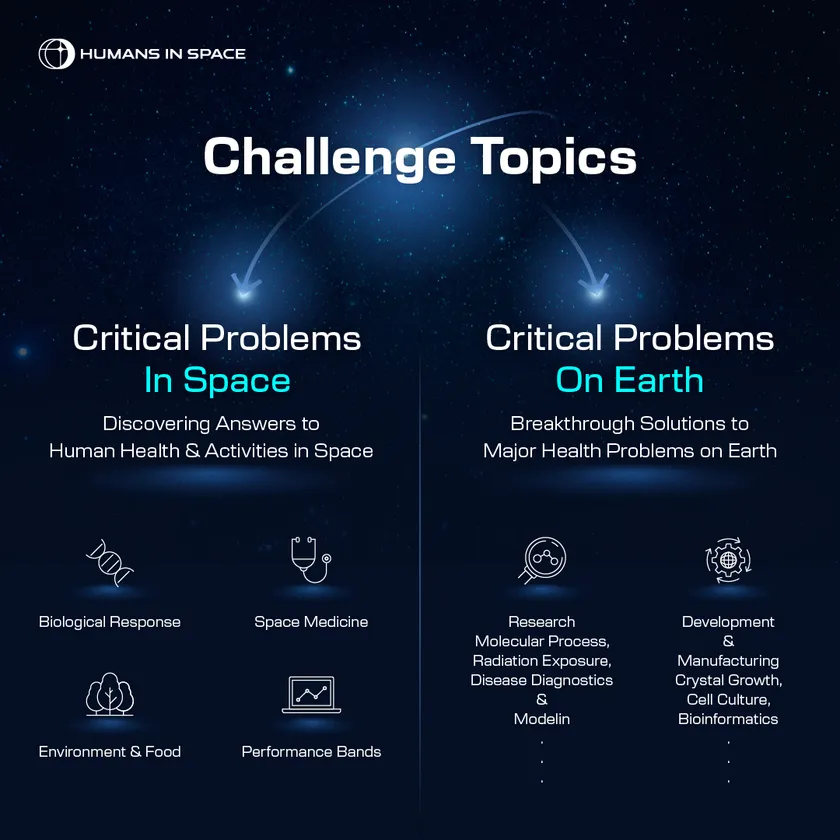 2024 Humans In Space Challengeは、宇宙と地上における重要なヘルスケア問題に取り組む新興企業や研究者を募集する、第3回グローバル宇宙ヘルスケアチャレンジです。選ばれた受賞者には、株式投資、地球低軌道への打ち上げ資金、アクセラレーター・プログラムへの参加、有識者との貴重なネットワーキング機会が授与されます。応募期間は5月1日~6月27日(米国東部時間)です。
