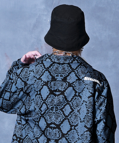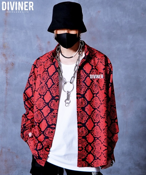 オーバーサイズのシャツに、パイソン(蛇)柄をプリント。