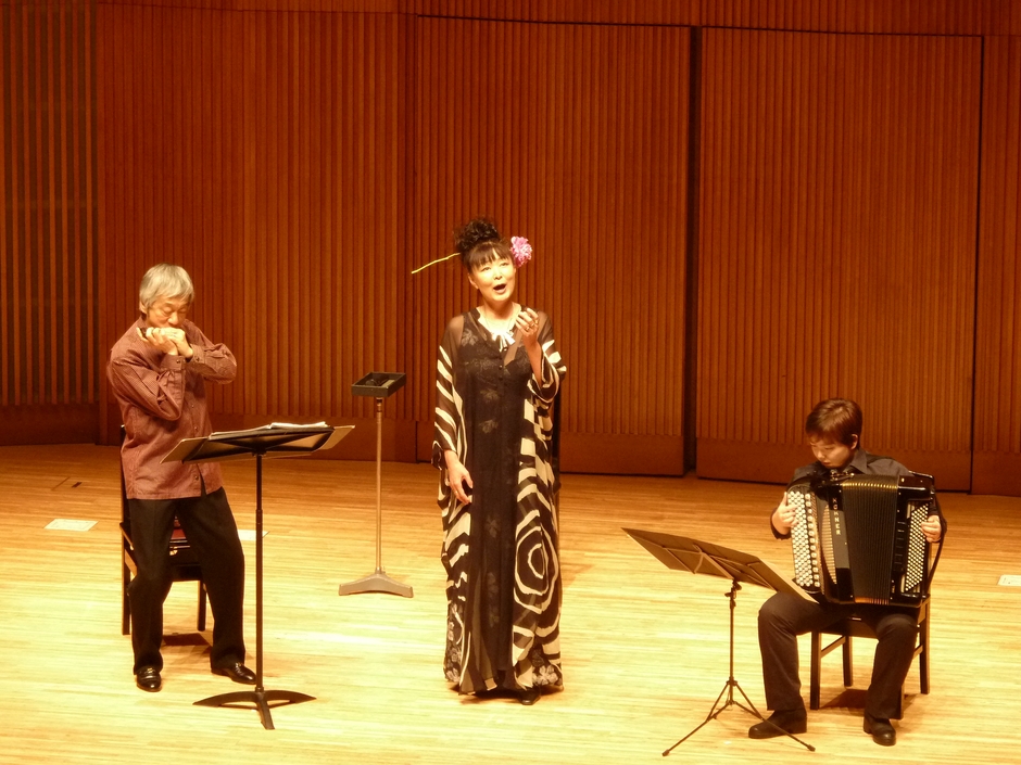 本コンサートは今年3月におこなったトリオ演奏の第2弾。今回は、「ハーモニカ」と「アコーディオン」そして「ソプラノ」という編成で、初めて歌が加わった音楽会になります。以前よりヴォーカルが加わった演奏で、懐かしい抒情歌のリクエストを頂いていたことを踏まえて、かつて小学校の教科書に多く取り上げられた名曲、フォスター作品と日本を代表する抒情歌、そして最後にピアソラなどを選曲いたしました。3人の息のあったサウンドのみならず、曲によっては、デュオ編成での演奏もおこないます。