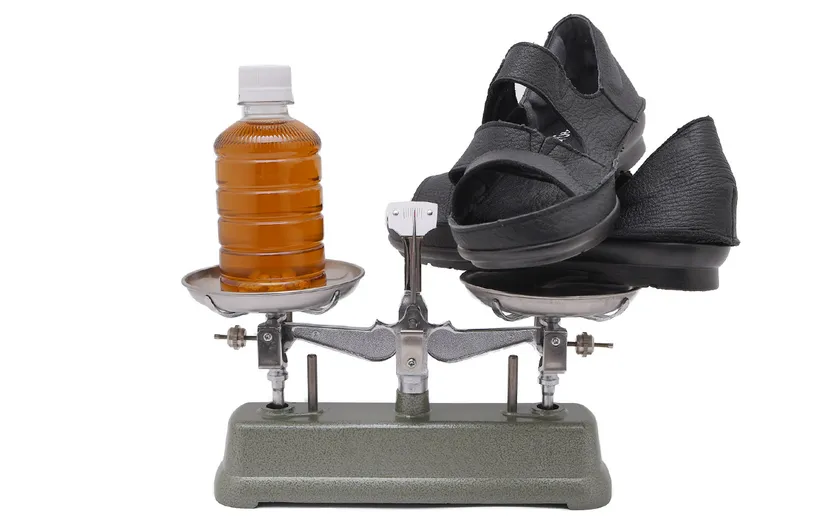 履き心地の良さを感じる上で重要な重さ。従来品よりも約30%軽量化した靴底と合わせて、Mサイズの片足が約150g。両足でも小さいペットボトル飲料1本分より軽いです!
