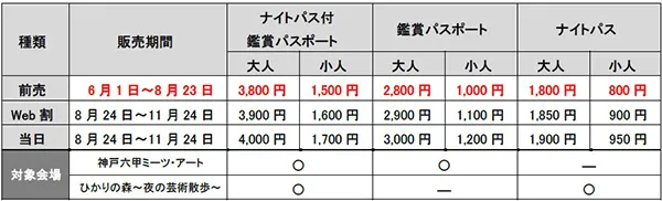 ※ROKKO森の音ミュージアム、六甲高山植物園、トレイルエリア(一部会場)、風の教会エリアは有料会場