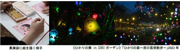 アーティスト高橋匡太(※1)が、神戸市立六甲山小学校1・2・3年生の児童たちと《ひかりの実》を作るワークショップを行います。大切な人の笑顔を思い浮かべながら果実袋に笑顔を描き、LEDの小さな光を入れて木々に取り付けます。その果実袋は「ひかりの森~夜の芸術散歩~」*1の開催期間中(2024年9月21日(土)~11月24日(日)の土日祝の夜間)、《ひかりの実 in SIKIガーデン》*2として展示されます。