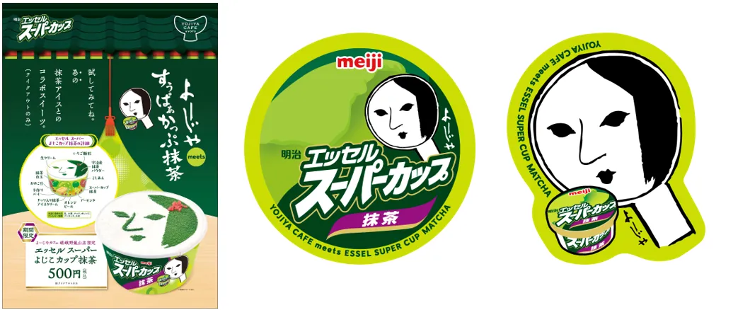 株式会社 明治(代表取締役社長:松田 克也)が展開する「明治 エッセル スーパーカップ 抹茶」は、京都発祥のよーじやグループ(京都府京都市中京区、代表取締役・國枝昂)が運営する「よーじやカフェ」とコラボします。期間限定でコラボメニュー「エッセルスーパーよじこカップ抹茶」を2024年6月17日(月)より、「よーじやカフェ 嵯峨野嵐山店」にて、テイクアウト限定で発売します。