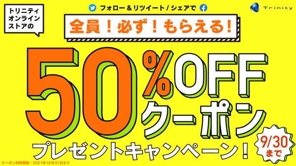 また発売を記念して、応募者全員に50%OFFクーポンプレゼントするキャンペーンを、Twitter、Facebookにて開催いたします。
