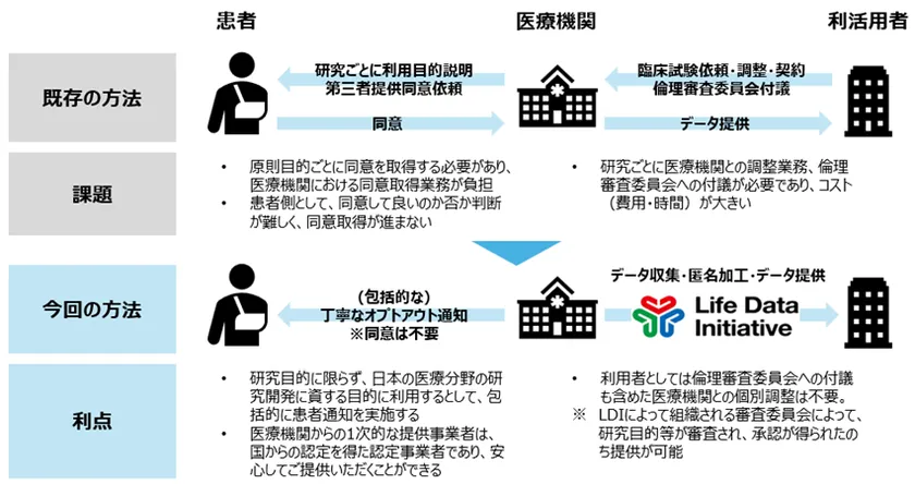 (注1) 正式名称「医療分野の研究開発に資するための匿名加工医療情報及び仮名加工医療情報に関する法律」。国民・患者の皆様の個人情報を個人が特定できないように加工し、新薬や治療法の研究開発に役立てるための法律。