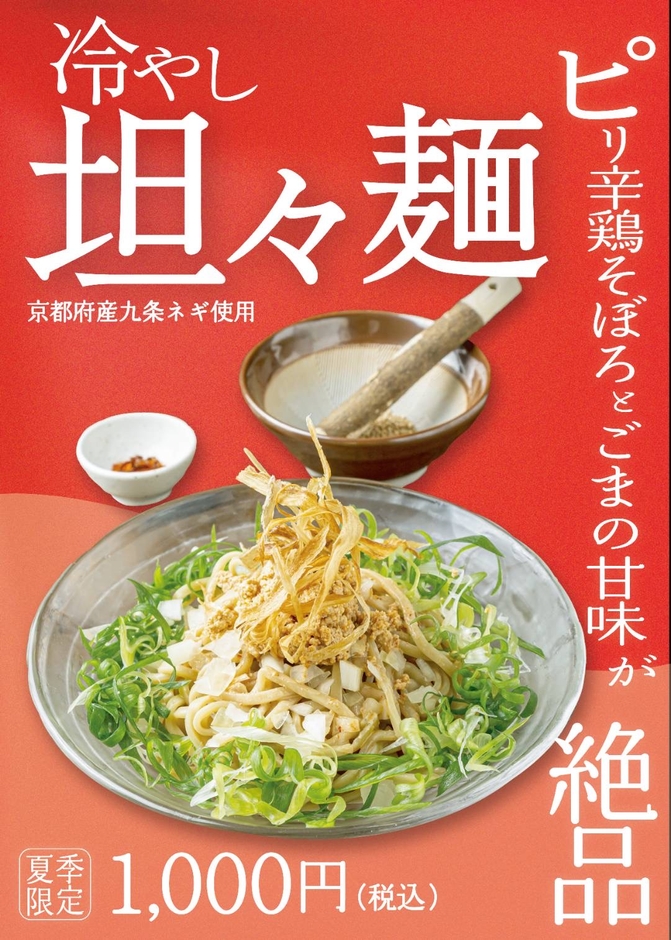 祇園発祥でこの度、柳馬場に移転しましたラーメン処「麺処むらじ 柳馬場六角」では、むらじの夏季限定「冷やし担々麺」の販売を今年も開始いたしましたことをお知らせいたします。