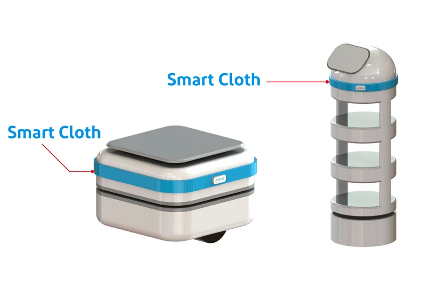 I-PEXでは電気を通す布素材(導電布)に着目し、布素材による伸縮性や折り曲げても壊れない柔軟性に加え、自由に形状を変更可能でさまざまなロボットに使用できる汎用性や、既存のロボットに後付けできる取付性を兼ね備えた「Smart Cloth」の開発に至りました。