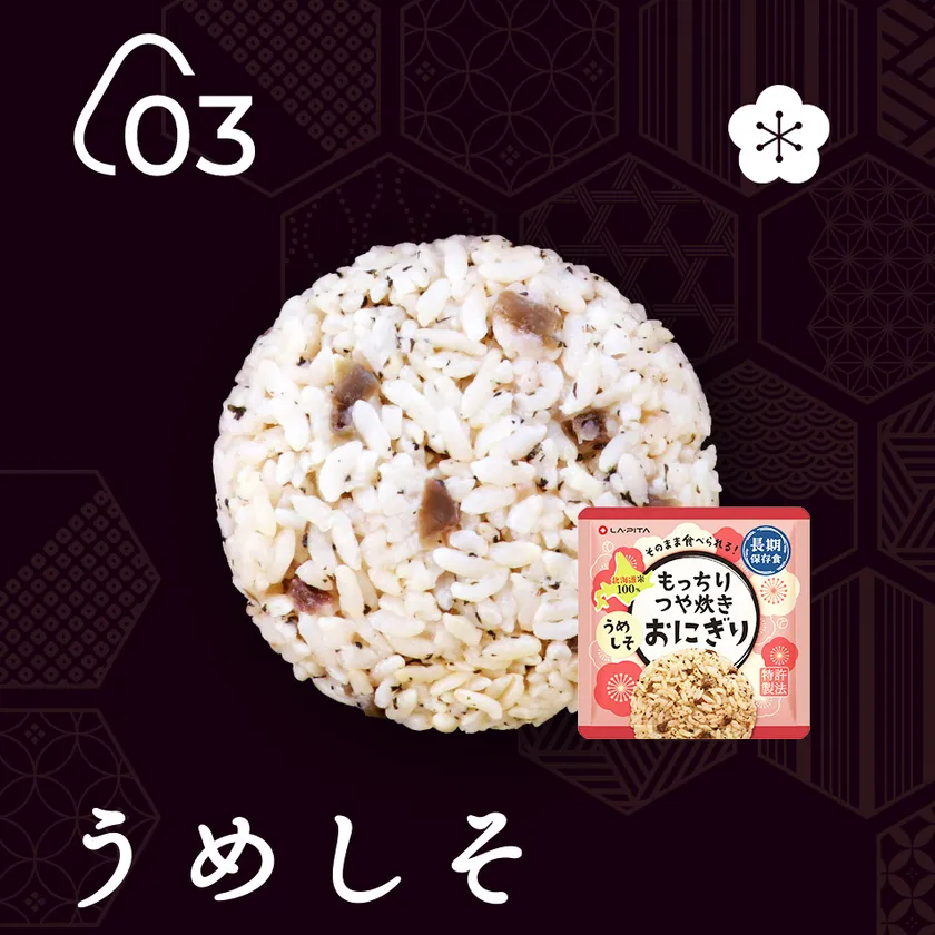 ●商品名 :もっちりつや炊きおにぎり うめしそ