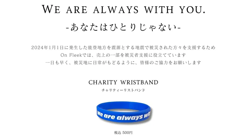 チャリティーイベントとして能登半島地震復興支援のリストバンドを販売