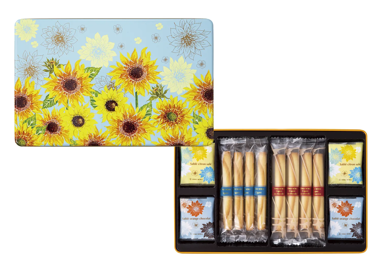 内容:シガール:8本、シガール オゥ ショコラ:8本、サブレ シトロン サレ:10枚、サブレ オランジュ ショコラ:10枚