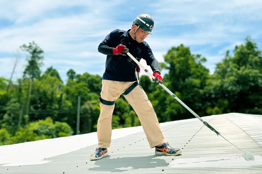 遮熱塗装をする様子