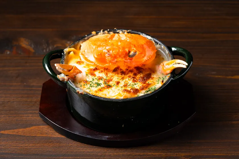 まるで蟹がグラタンの中かららひょっこり顔を出しているかのような、思わずカメラロールに収めたくなるフォトジェニックなビジュアル。