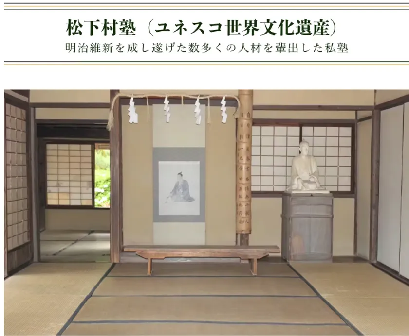 1) 松下村塾(ユネスコ世界文化遺産):明治維新を成し遂げた数多くの人材を輩出した私塾