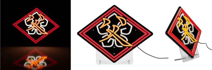 【30個限定】父ノ背中の特徴的なロゴのLEDネオン風ライトに加え、てるしゃん監修のアームカバー、刺繍ステッカー、刺繍アートキーホルダーを合わせたコンプリートセット。