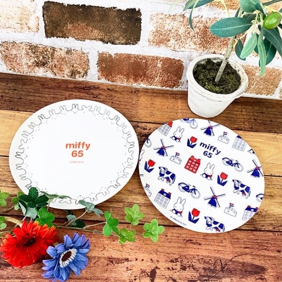 ミッフィー65周年モチーフのメラミンプレートです。電子レンジ、食洗器不可。