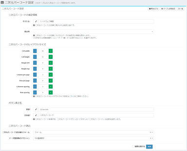 (1) カスタムテーブルの「二次元バーコード設定」をクリック