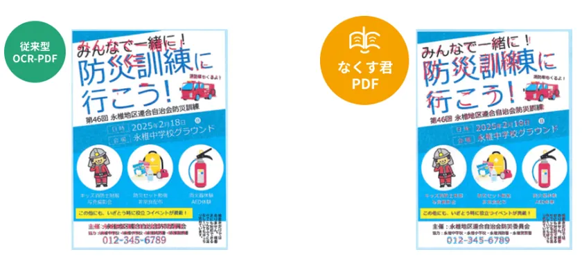 ●これまで困難とされてきた「手書き」や「カラー」、「ちらし」等、どんな種別の書類でも対応し、検索可能なテキストデータに変換します。