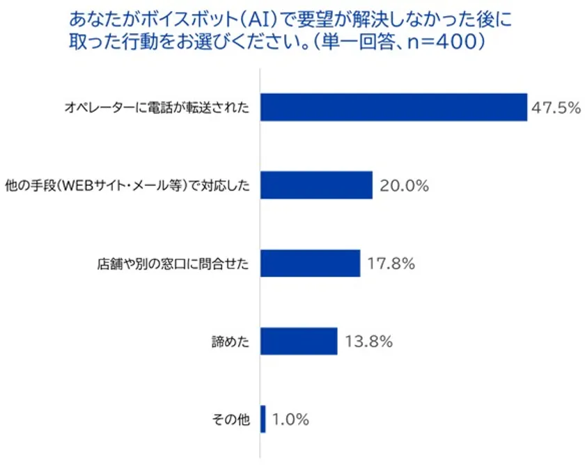 【ボイスボットで要望が解決しなかった場合、約半数は有人対応へ