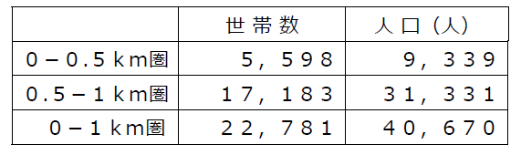 ・店舗から1㎞圏内は単身世帯比率が56.2%、2人世帯比率が21.9%と全体の約8割が少人数世帯です。