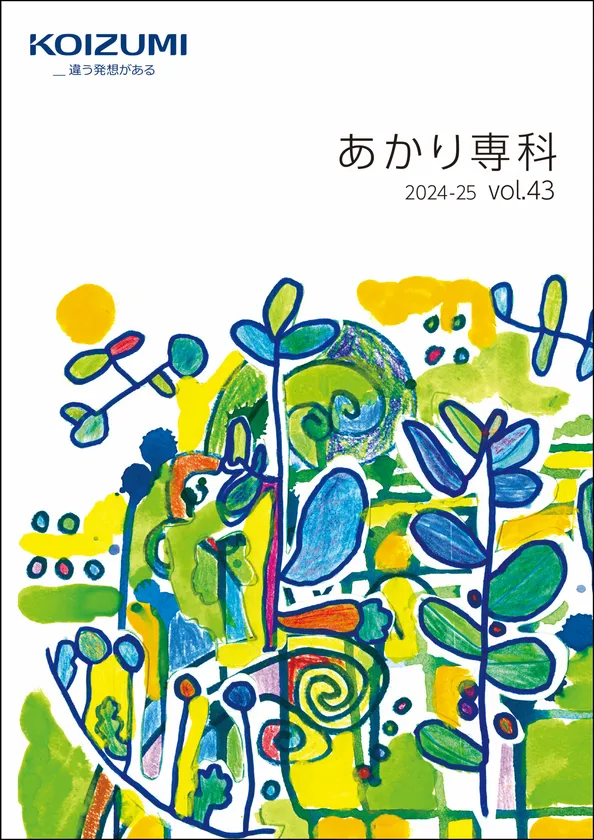 コイズミ照明株式会社(本社:大阪市中央区、社長:佐久間 晋、以下「当社」)はこのほど、住宅・店舗用照明器具の2024年度版総合カタログ「あかり専科 vol.43 2024-2025」を発刊しましたが、社会貢献活動の一環として、一般社団法人障がい者自立推進機構(所在地:東京都港区、代表理事・創業者理事:松永 昭弘、以下「同機構」)が行っている「パラリンアート」※1に協賛し、当機構の所属アーティストが描いた作品をカタログの表紙と巻頭ページに採用いたしました。