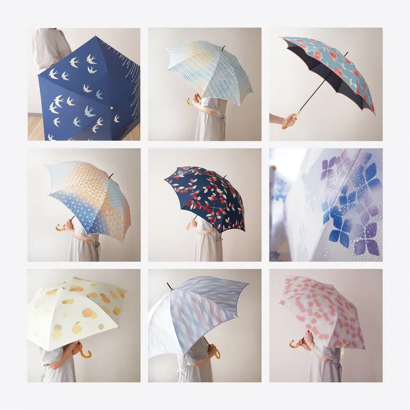 お使いのシーンに合わせて選べる、3つの仕様(長傘・2段折りたたみ傘・5段折りたたみ傘)で展開。どの仕様も、骨にはグラスファイバーを使用しているため、風に強く丈夫です。