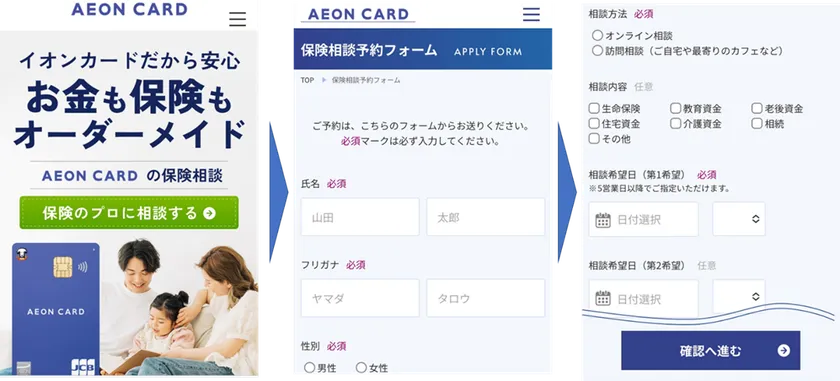 (3) 「保険相談予約フォーム」に必要項目を入力して「確認へ進む」で送信