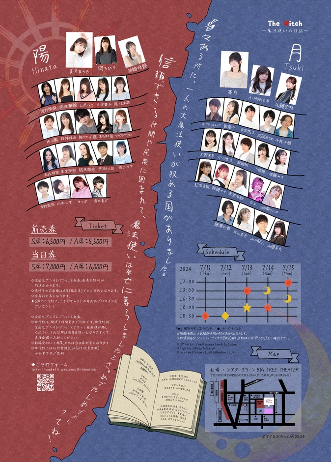 ぱすてるからっとproduce 舞台『The Witch~魔法使いの日記~』が2024年7月11日 (木) 〜 2024年7月15日 (月・祝)にシアターグリーン BIG TREE THEATER(東京都 豊島区 南池袋 2-20-4)にて上演されます。チケットはカンフェティ(運営:ロングランプランニング株式会社、東京都新宿区、代表取締役:榑松 大剛)にて発売中です。