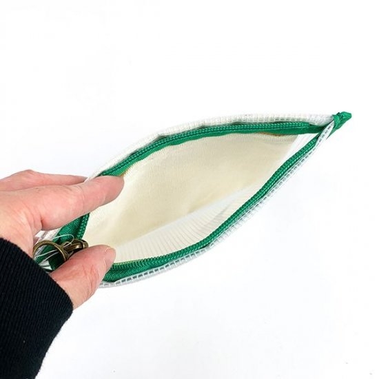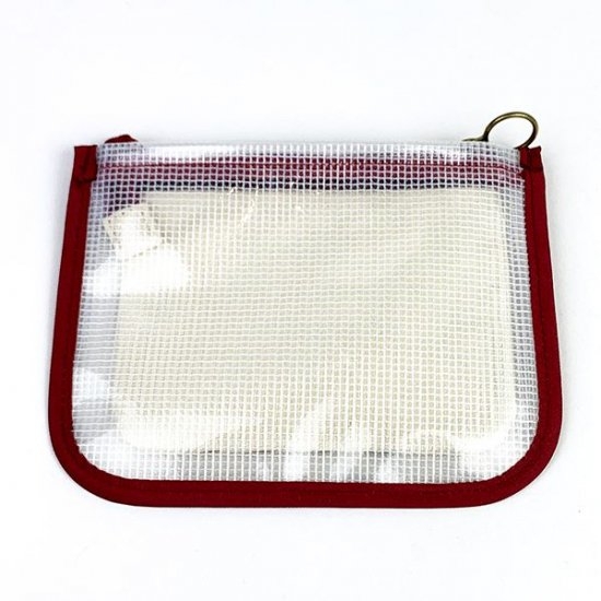 いろいろな種類のポーチが登場していますが、これからの季節にもピッタリなメッシュ素材のポーチはいかがですか?クリアな素材なので中身も透けて見えて、とってもオシャレ♪内側には帆布素材のポケットまでついています。